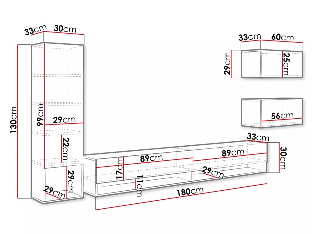 - 2x skříňka: 60/29/33 cm