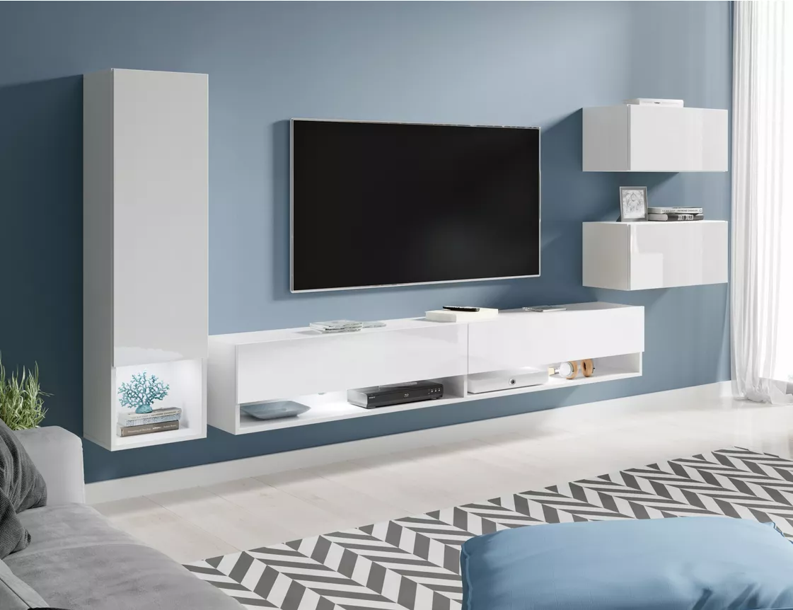Obývací stěna XENIE - bílá / bílá lesk
