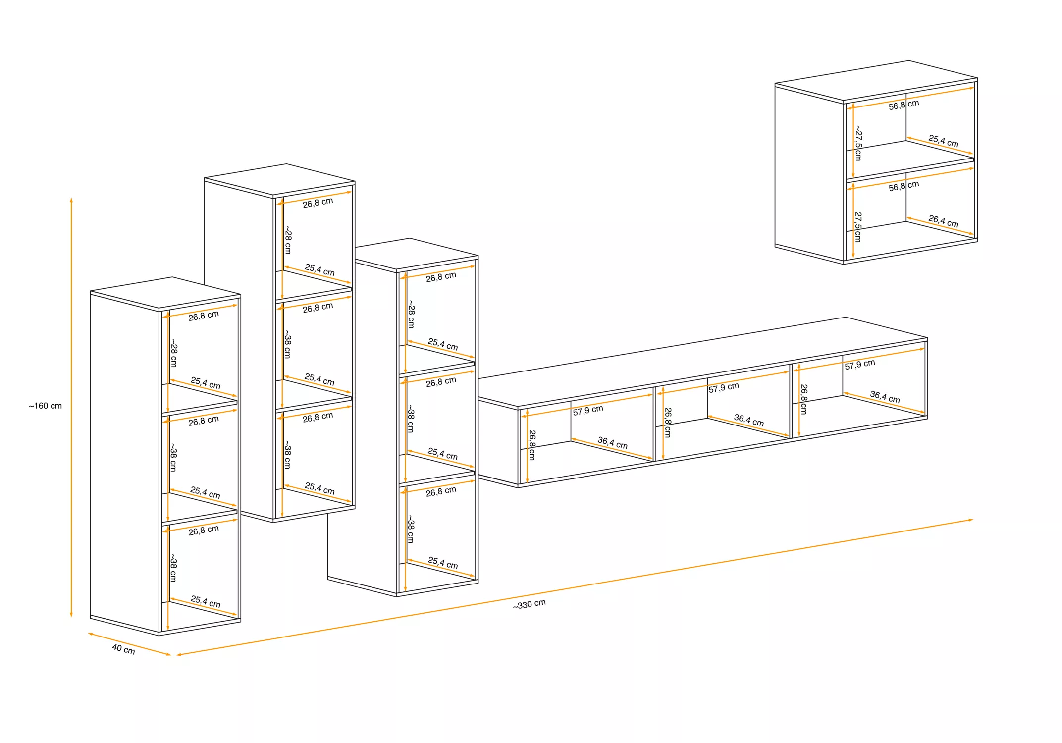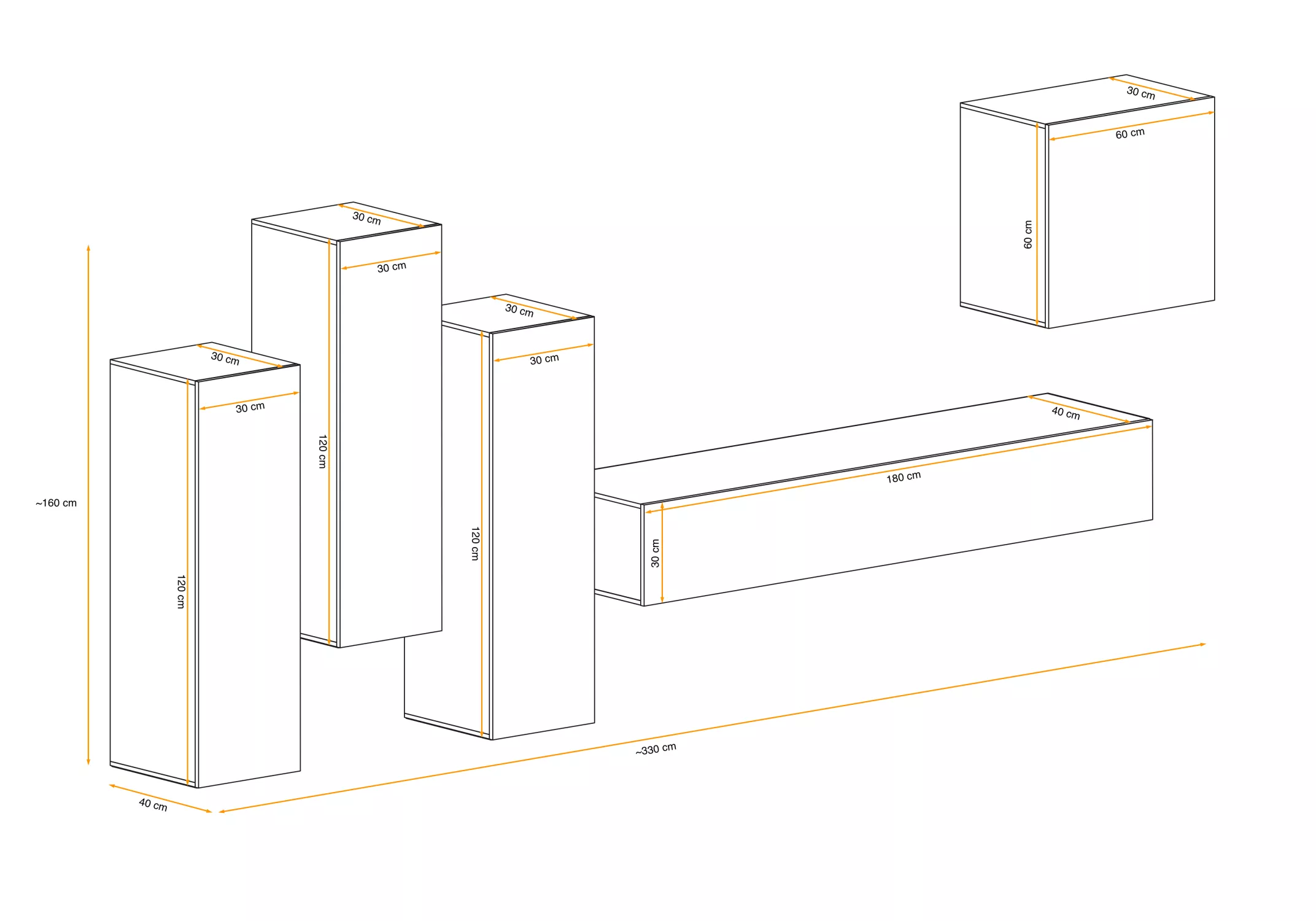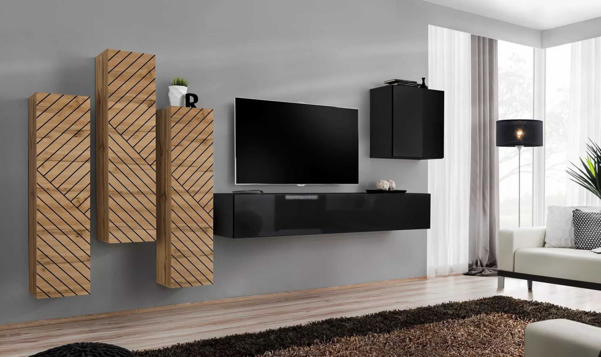 Rionata je skvělou nabídkou nábytku do obývacího pokoje. Krásný a zároveň strohý styl obývací stěny Rionata se bude skvěle hodit do moderních interiérů. Celá kolekce dokonale odpovídá nejnovějším trendům. Stěna Rionata se vyznačuje jedinečným charakterem, díky kterému se stane skvělým vybavením každého obývacího pokoje. Všechny skříňky jsou závěsné, což značně usnadňuje úklid.