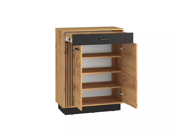 Botník se šuplíkem FAZA je moderním kusem nábytku do vaší předsíně. Za dvířky je dostatek prostoru pro úschovu obuvi a praktický šuplík na klíče nebo jiné drobnosti.