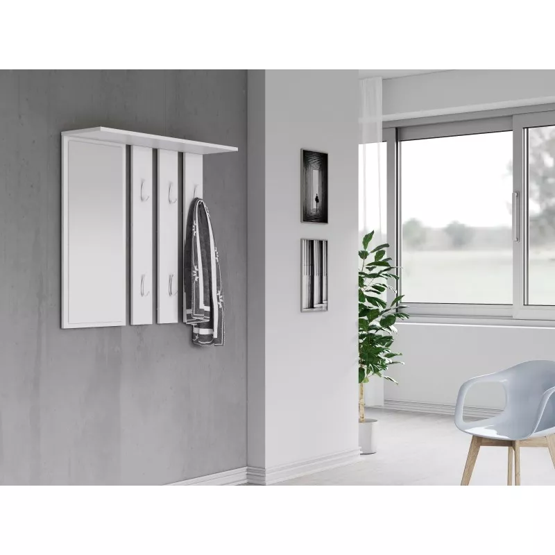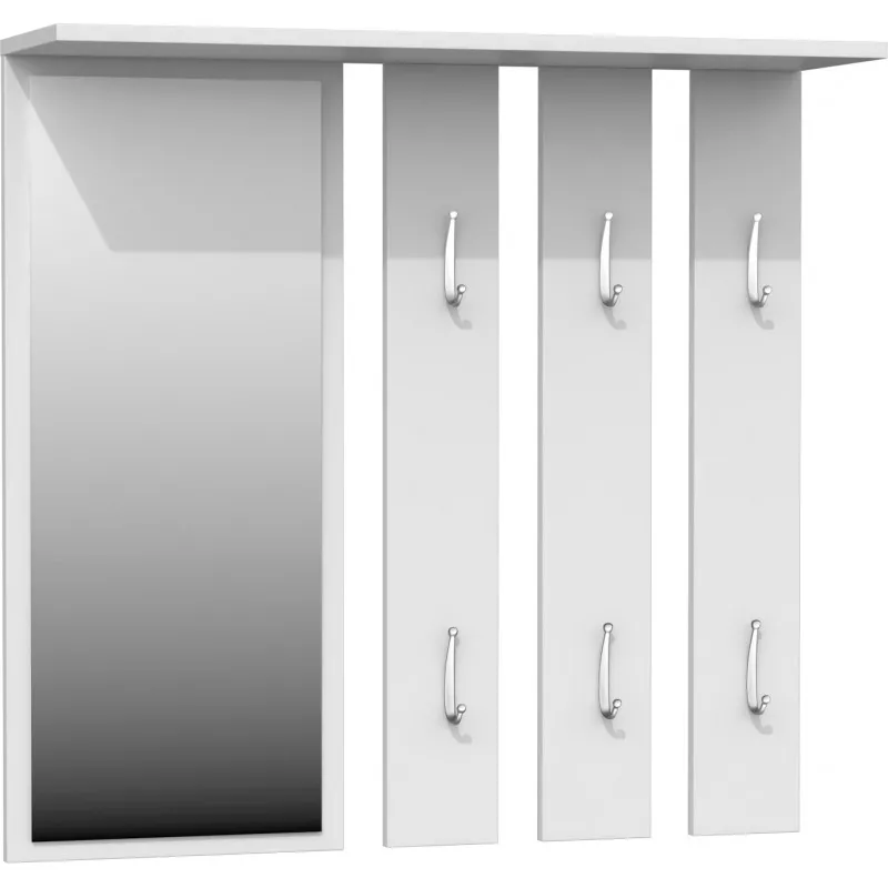 Hledáte jednoduchou a zároveň praktickou stěnu do předsíně? Stěna ANDRUS je vhodná i do menších prostor. Je tvořena 6 věšáky, poličkou a praktickým zrcadlem.