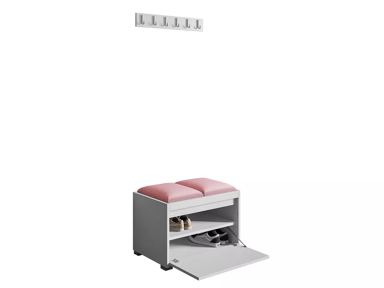 Jednoduchá a zároveň praktická předsíňová stěna CLENZE 2 se skládá z botníku se sedákem a čalouněnými panely, které poskytují komfortní sezení při obouvání či vyzouvání bot. Samozřejmostí je nástěnný panel se 6 věšáky.
