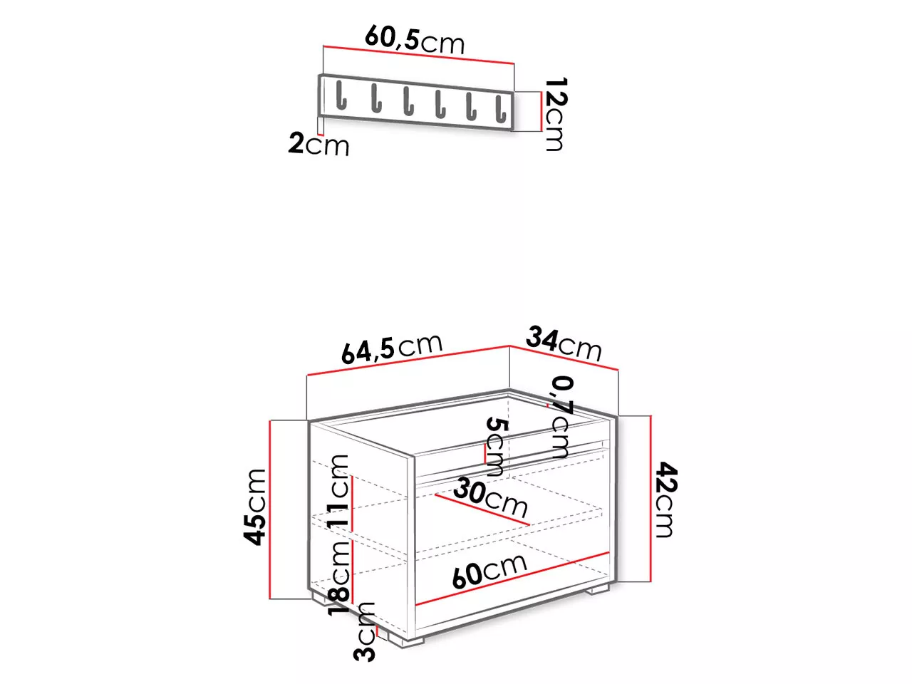 - nástěnný panel s věšáky: 60,5/12/2 cm