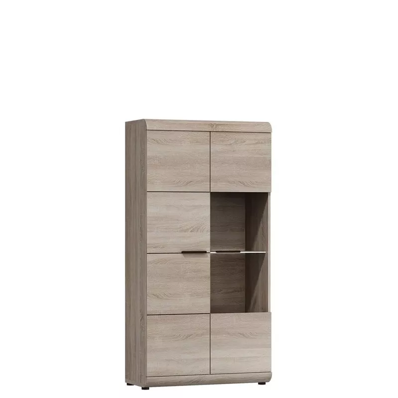 Vitrína Claudio najde své využití v každém moderním interiéru. V prostorných skříňkách můžete snadno ukládat jakékoliv předměty, včetně oblečení. Prosklená část nabízí důstojné místo na vystavení například vaší sbírky porcelánu, malovaných talířů po babičce nebo pracně vyřezávaných dřevěných sošek. Skříň je vybavena praktickým LED osvětlením.