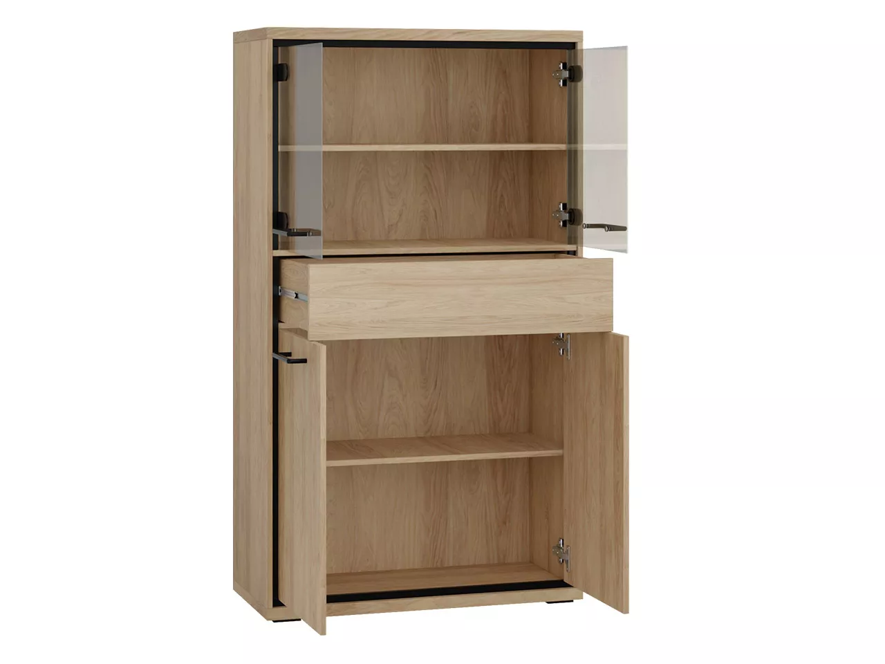Funkční a mimořádně elegantní nízká vitrína SUCRE skvěle zapadne do moderního interiéru, kde poskytne další úložný prostor a umožní vystavit dekorativní předměty nebo důležité rodinné památky. Vitrína je vyrobena z vysoce kvalitních materiálů, aby po dlouhá léta těšila svým vzhledem. Je vybavena technologií otevírání "PUSH TO OPEN". Tento inovativní systém otevírání spočívá v mírném stlačení předních částí. Praktické LED osvětlení prosklené části ji dodá jedinečné kouzlo.