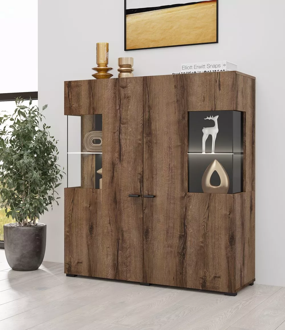 Prosklená vitrína NIKOL se hodí do všech moderních obývacích pokojů. Disponuje 6 policemi z nichž 2 jsou skleněné.