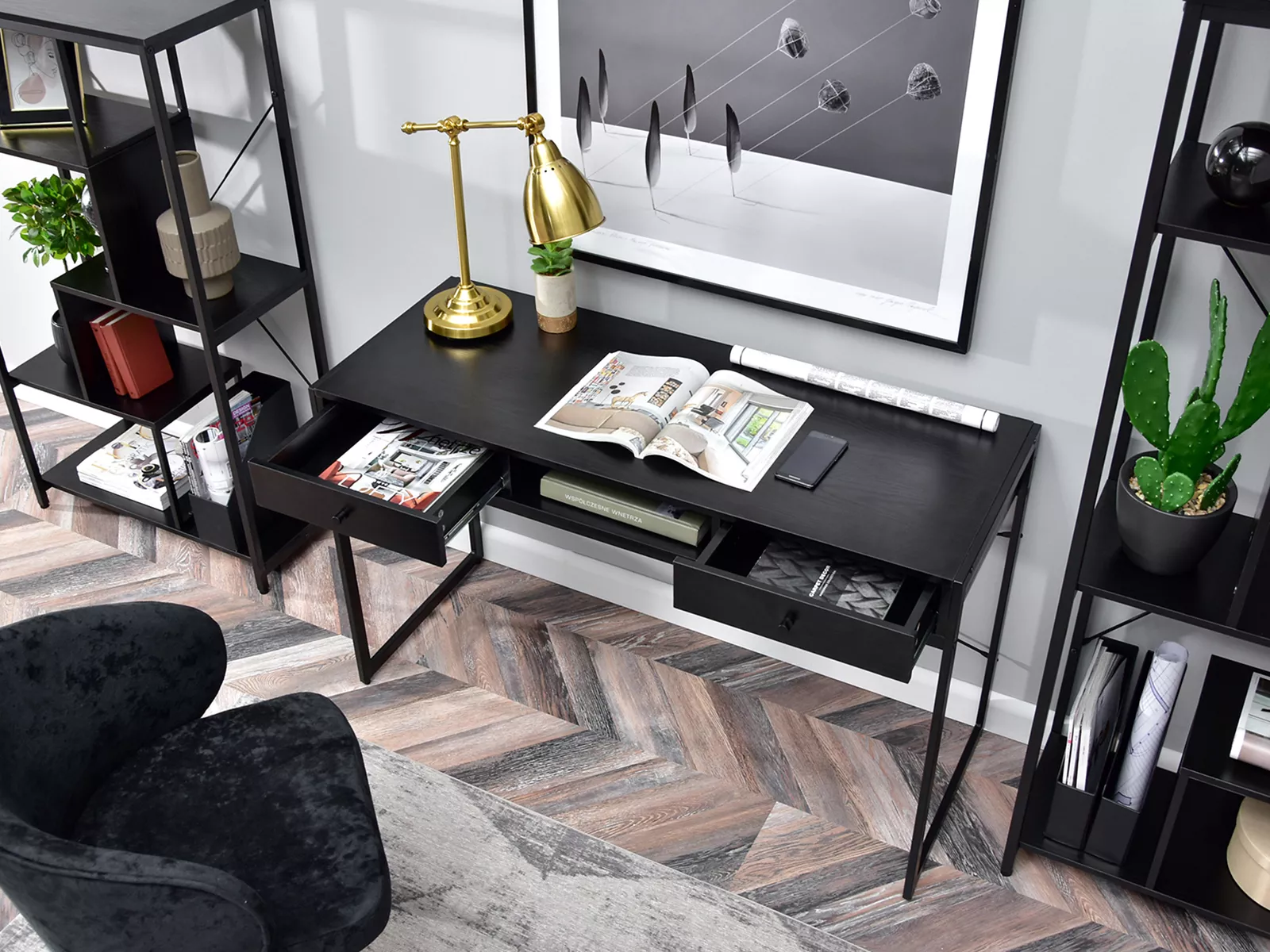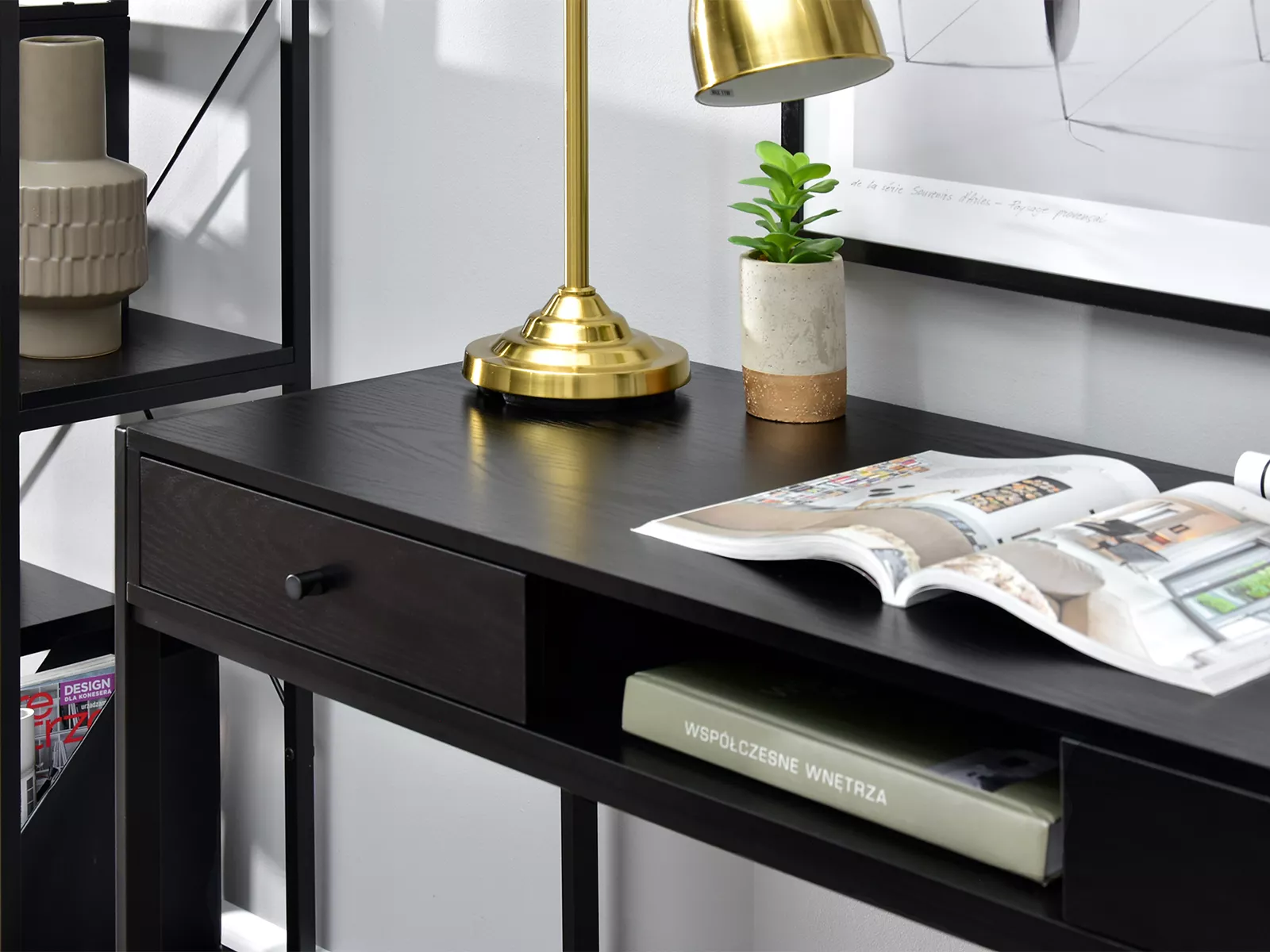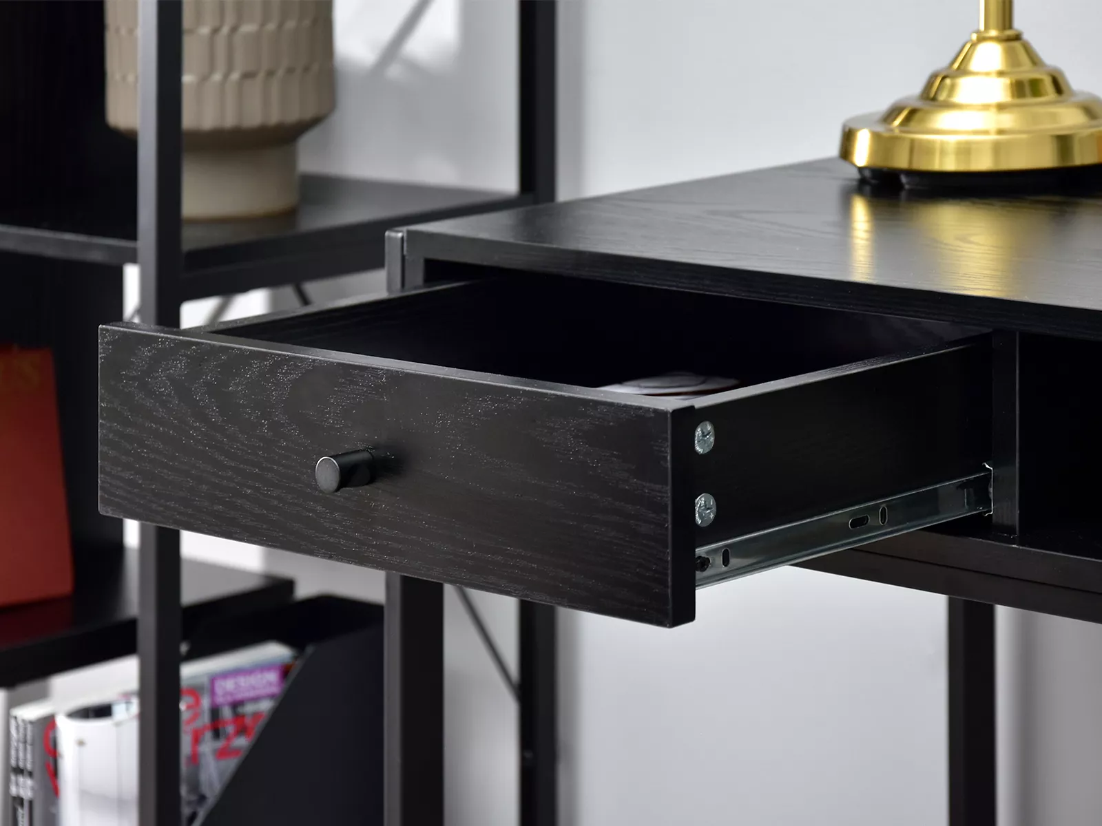 Široký psací stůl AMARU se dokonale hodí do moderních pracoven či studoven, kde jeho elegantní design, stabilita a objem šuplíků vytvoří funkční a estetické prostředí k práci nebo studiu. Police, která odděluje šuplíky, umožňuje pohodlné otvírání zásuvek bez nutností odsunutí se od stolu.