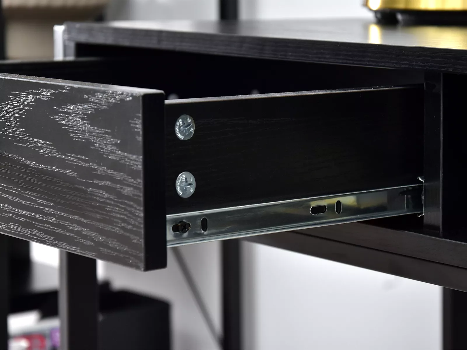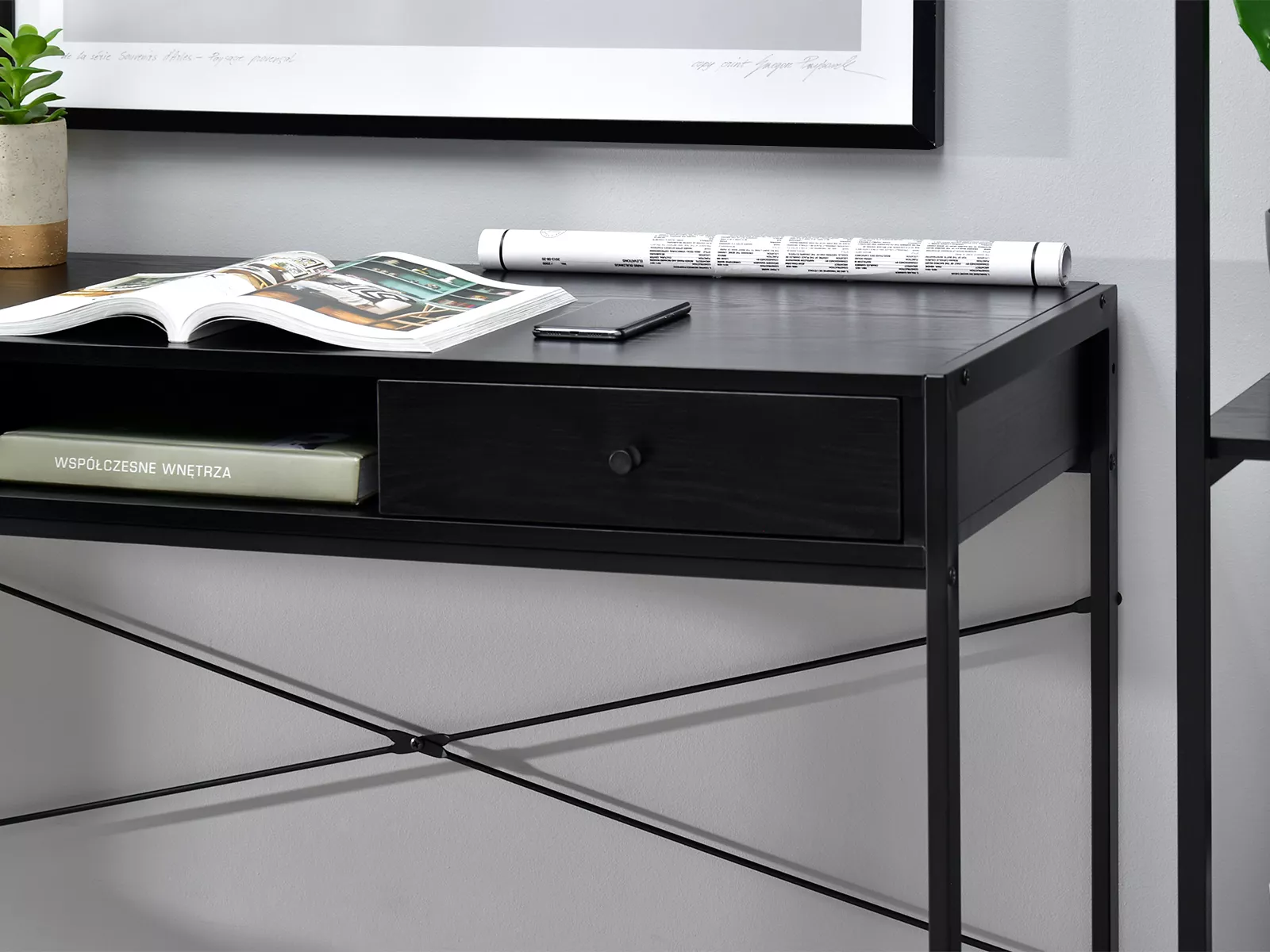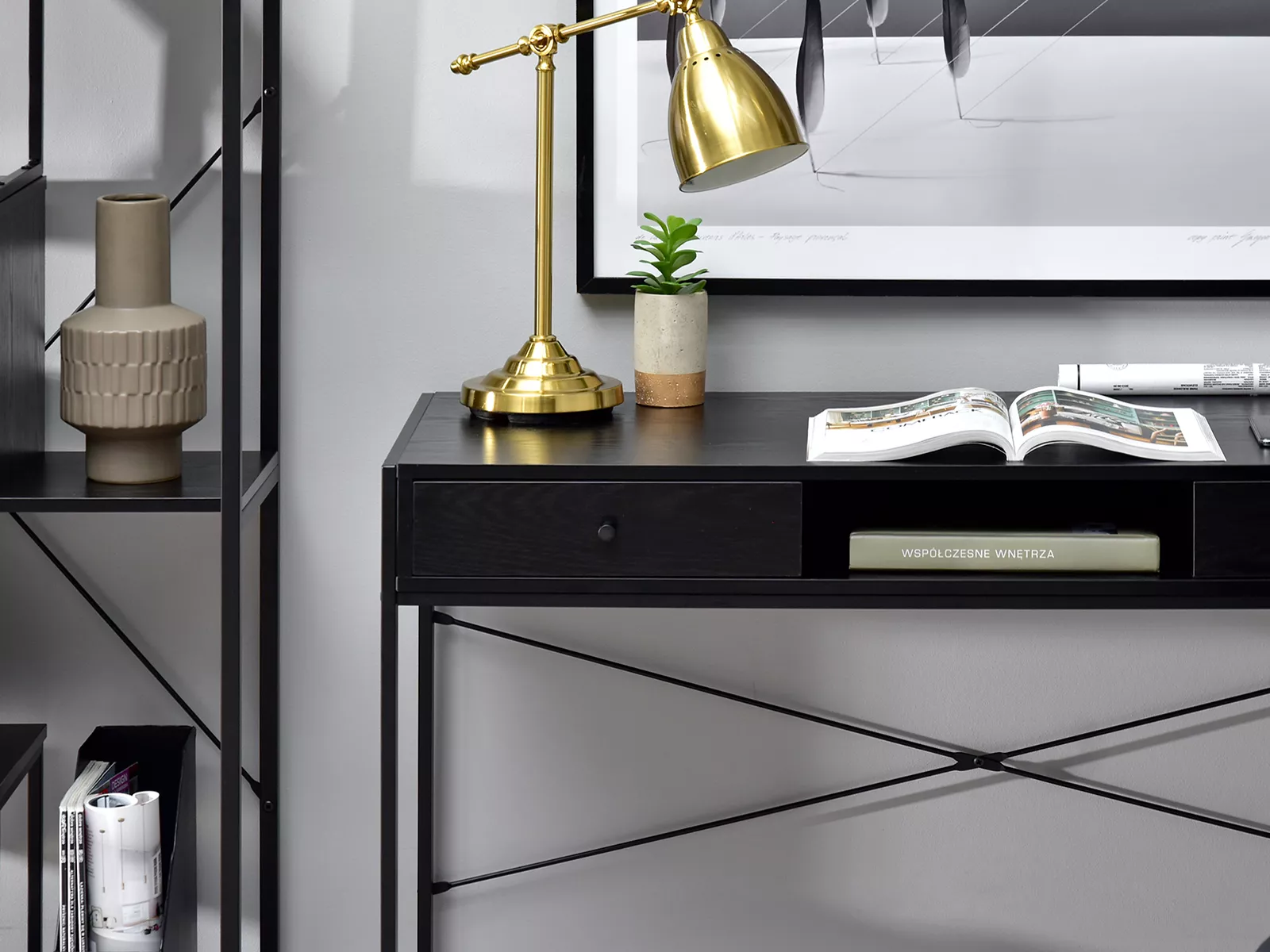 Široký psací stůl AMARU se dokonale hodí do moderních pracoven či studoven, kde jeho elegantní design, stabilita a objem šuplíků vytvoří funkční a estetické prostředí k práci nebo studiu. Police, která odděluje šuplíky, umožňuje pohodlné otvírání zásuvek bez nutností odsunutí se od stolu.