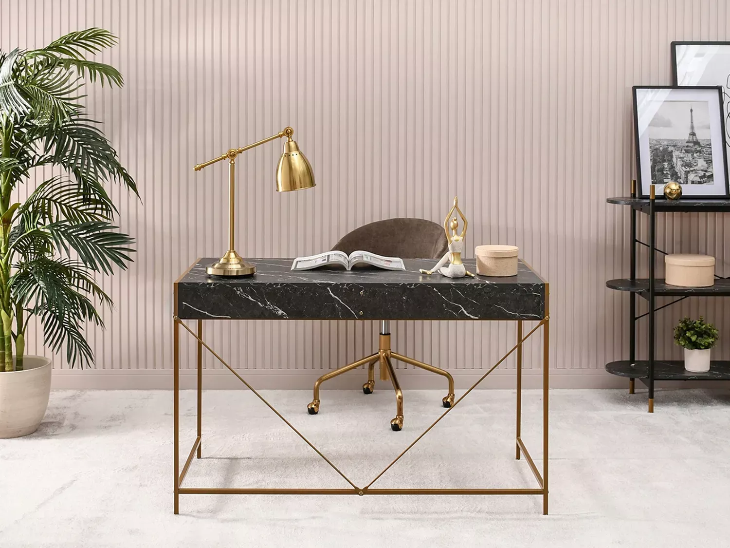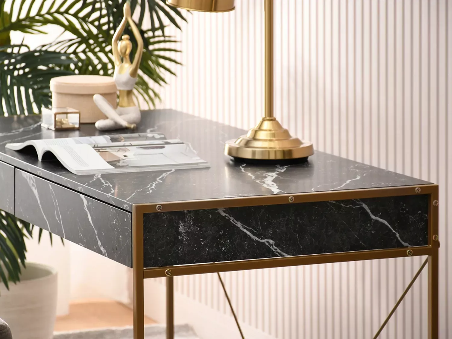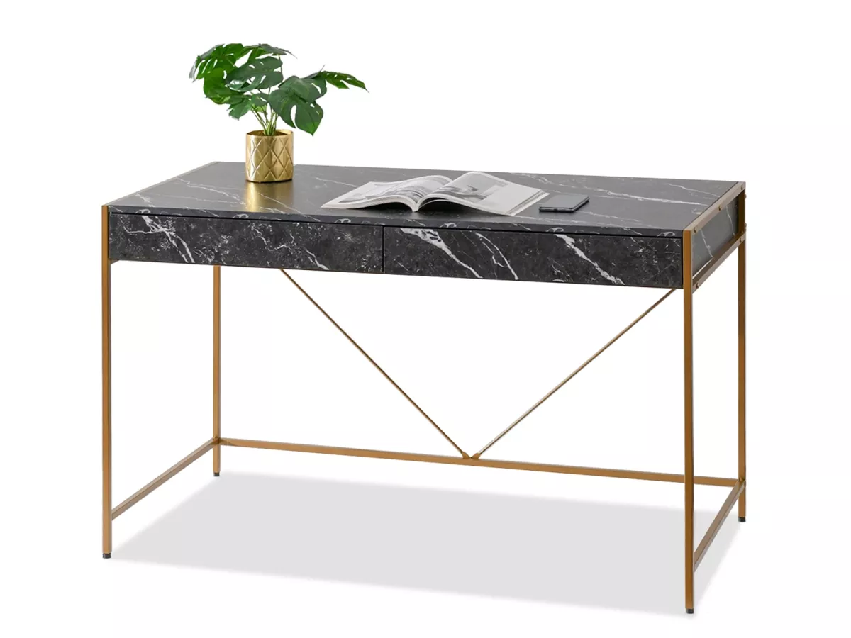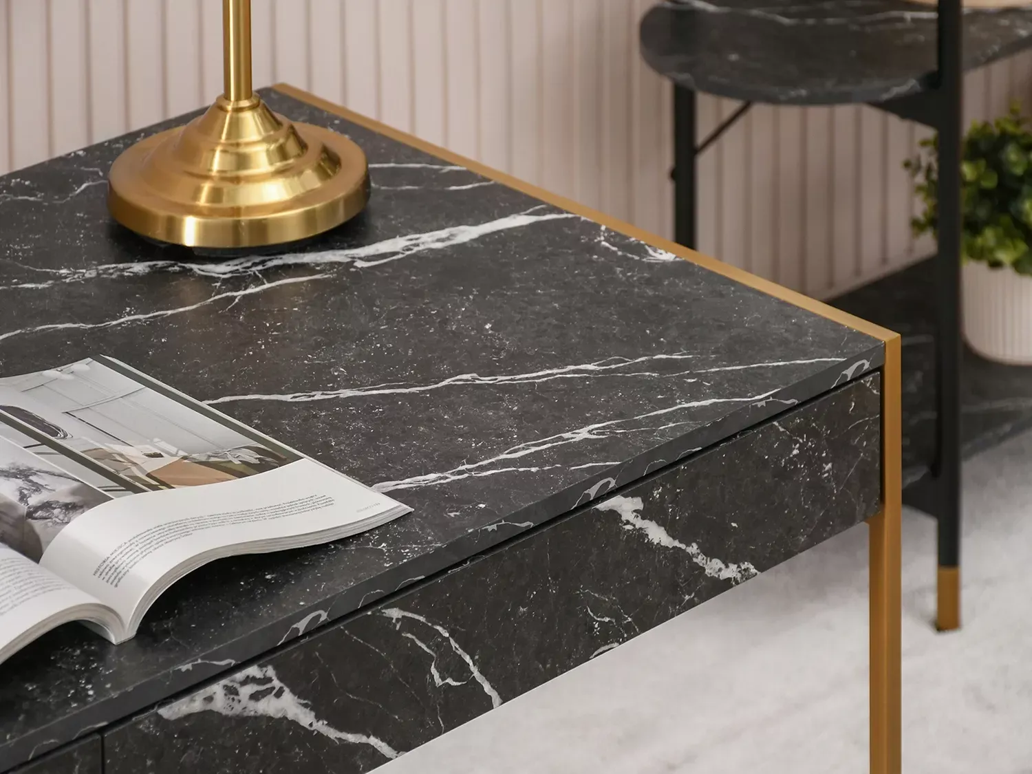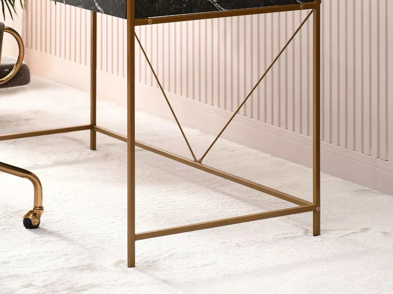Široký psací stůl DAMJAR - zlatý / černý mramor