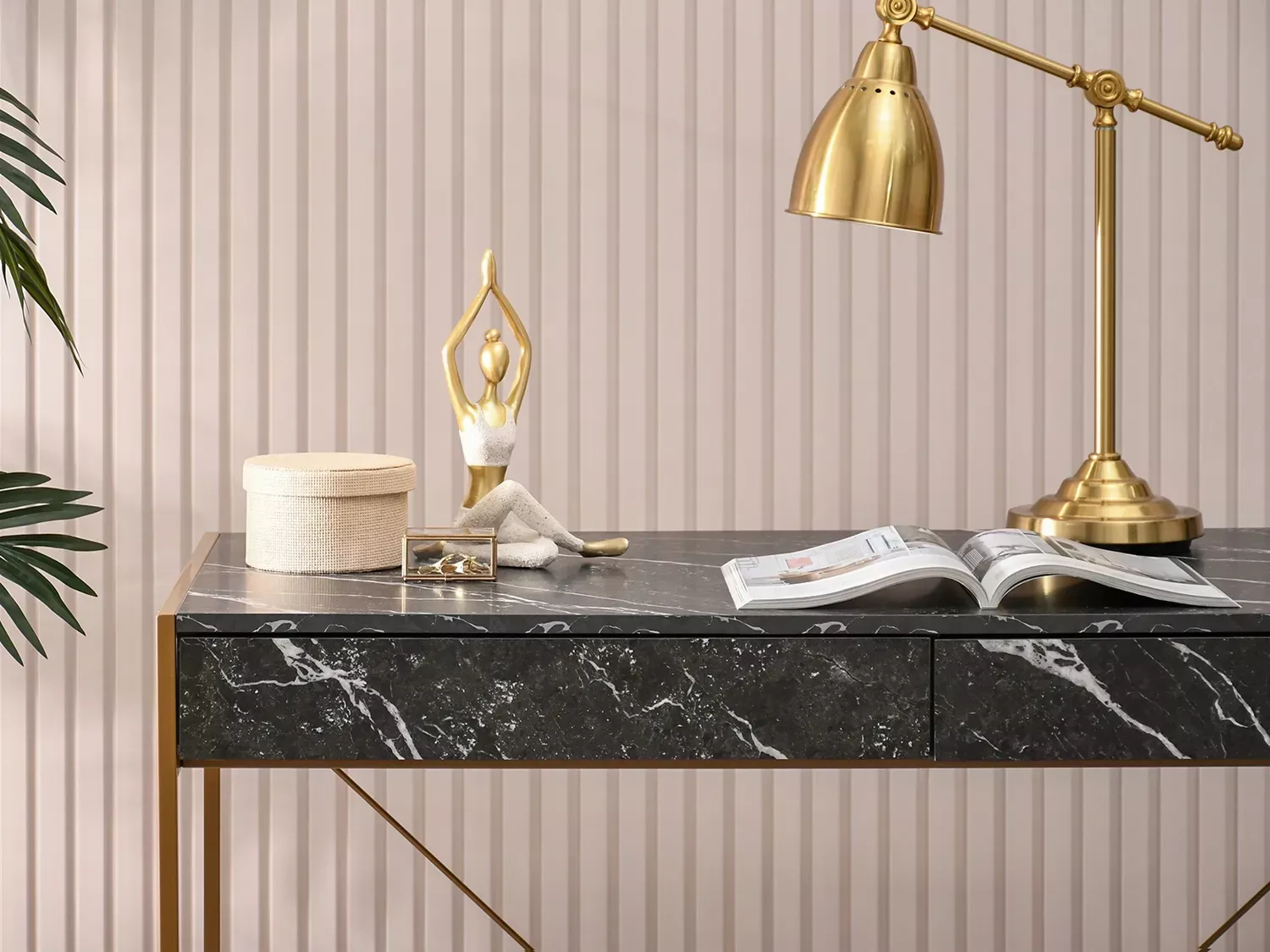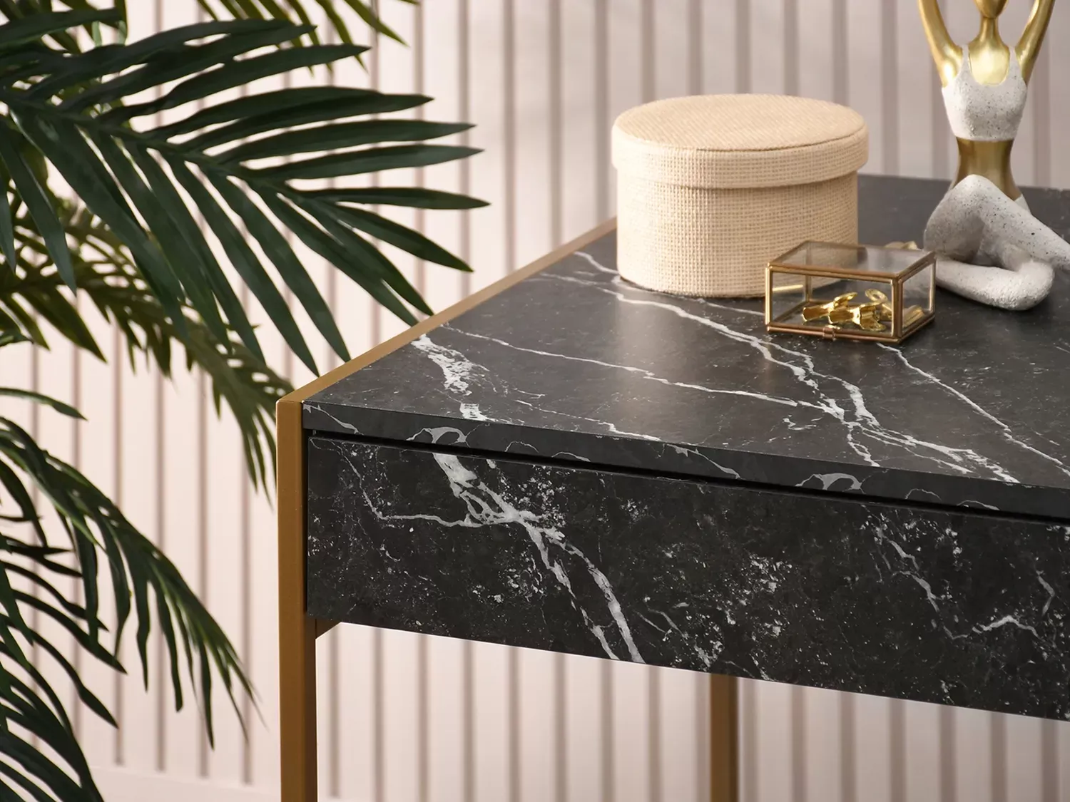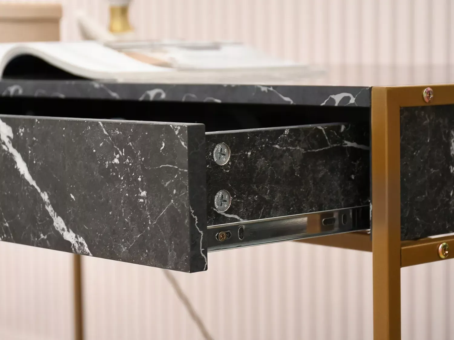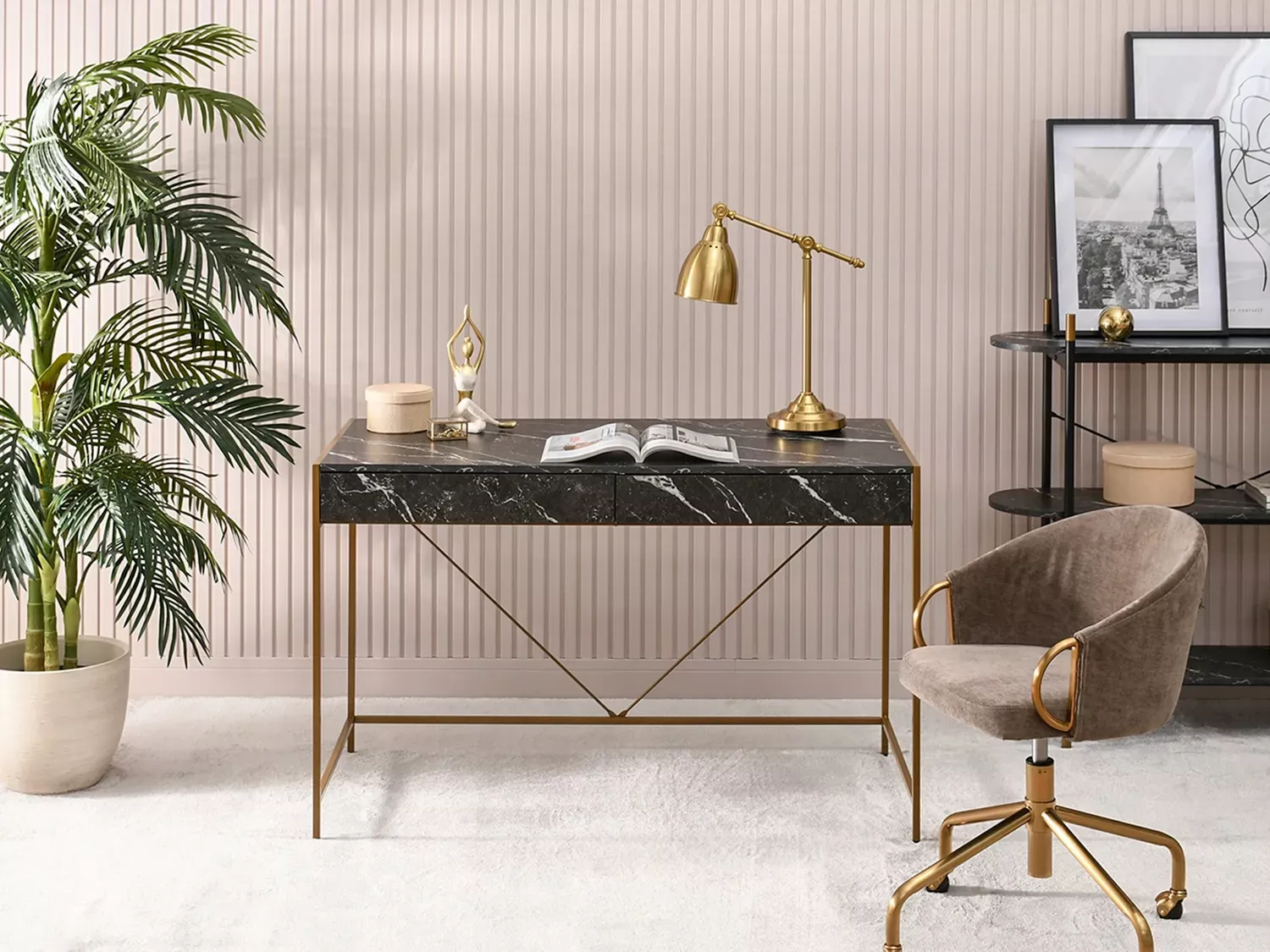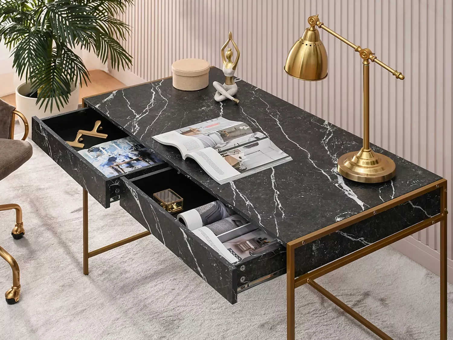 Široký psací stůl DAMJAR - zlatý / černý mramor