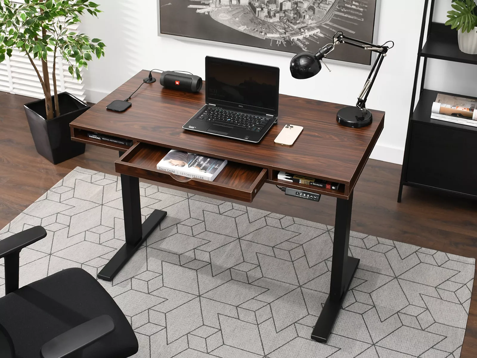 - elektricky nastavitelná výška stolu: 83-128 cm