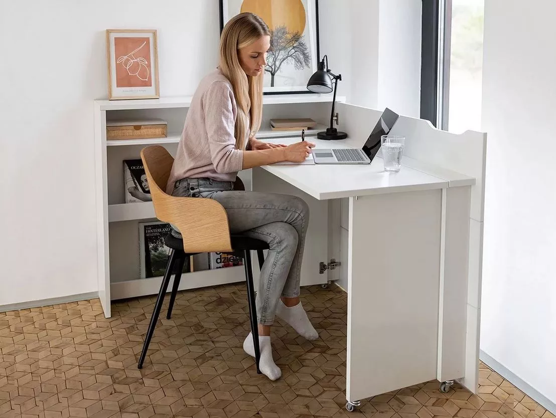 Skládací stůl CELENA je funkční řešení, které umožňuje optimální využití prostoru a zajišťuje pohodlnou práci. Jednou z hlavních výhod psacího stolu je skládací horní deska, díky níž lze stůl snadno rozložit a poskytnout tak větší pracovní plochu. Stůl je navíc vybaven úložným prostorem, který umožňuje ukládat a organizovat kancelářské doplňky, dokumenty či knihy.
