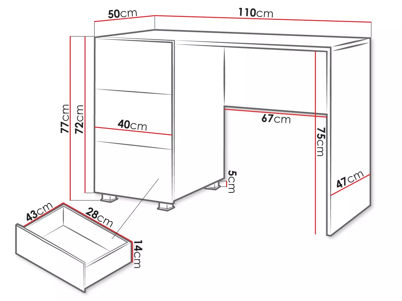CHEMUNG je psací stůl s moderním charakterem. Má prostornou pracovní desku a vestavěné zásuvky bez úchytek, které poskytují ideální místo pro uložení potřebných doplňků, které potřebujete během práce či studia. Stůl byl vyroben z odolné LTD s hranami PVC.