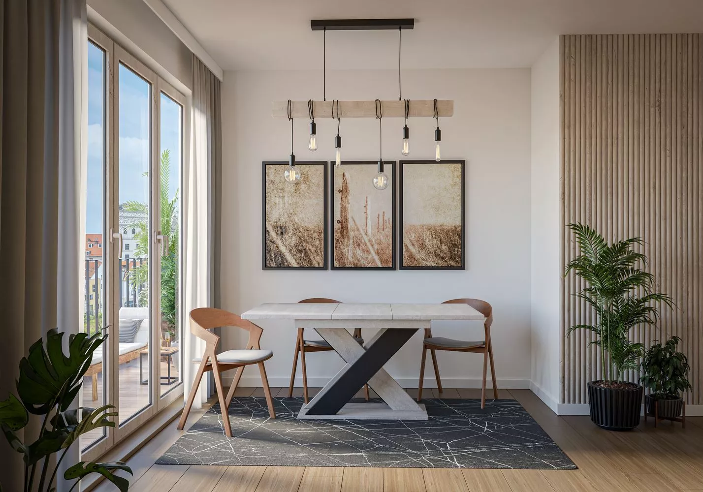 Rozkládací jídelní stůl NIKOS upoutá neotřelým designem se zajímavým provedením noh. Stůl lze rozložit až do šířky 160 cm, což vám zajistí spoustu místa i pro nečekanou návštěvu. Deska stolu je vyrobena z odolného LTD a opatřena ABS hranami.