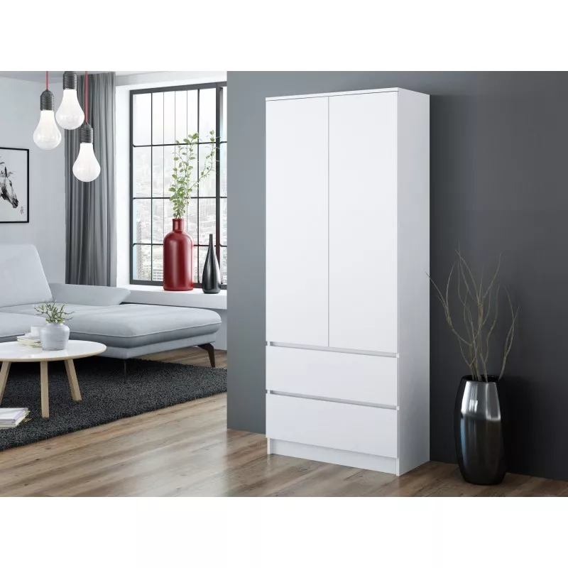 Šatní skříň 90 cm s šuplíky TAAVI - bílá