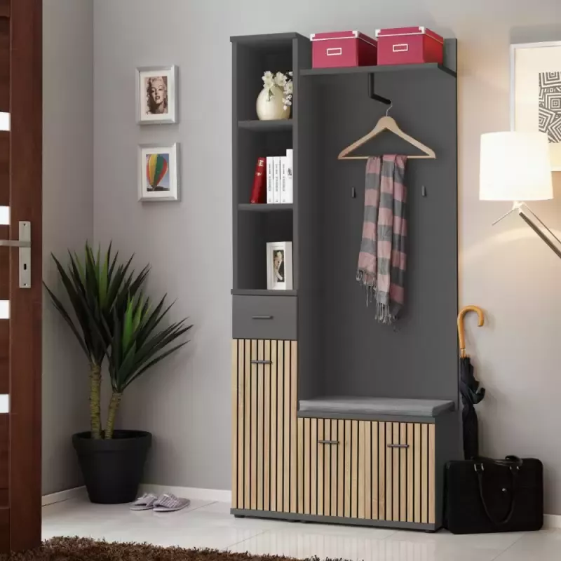 Sedací botník DELAN kombinuje pohodlí a funkčnost do jednoho kusu nábytku. Botníku je vyplněn dvěma policemi, na které si můžete dát boty.