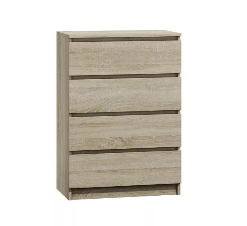 Úzká šuplíková komoda TAAVI poskytuje dostatek úložného prostoru v podobě 4 prostorných zásuvek. Čela zásuvek nemají úchyty, což zajišťuje pohodlné používání a zdůrazňuje moderní charakter nábytku. Díky svým kompaktním rozměrům je komoda vhodná i do menších prostor.