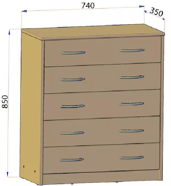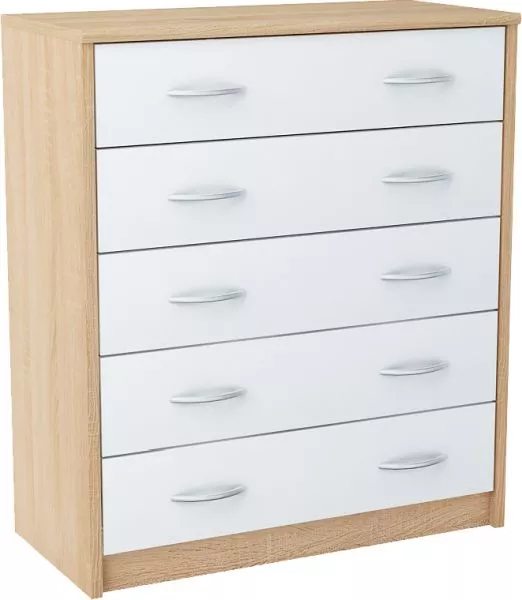 Šuplíková komoda IBOJA je vybavena 5 šuplíky s úchyty ve stříbrné barvě, které zajistí pohodlné uložení věcí.