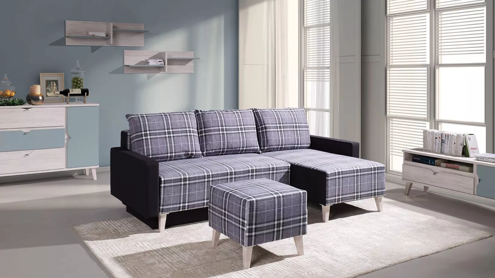 Taburet Muriel v klasickém tvaru doplní uspořádání vašeho obývacího pokoje. Charakteristickým znakem této kolekce nábytku je její kostičkovaný vzor.