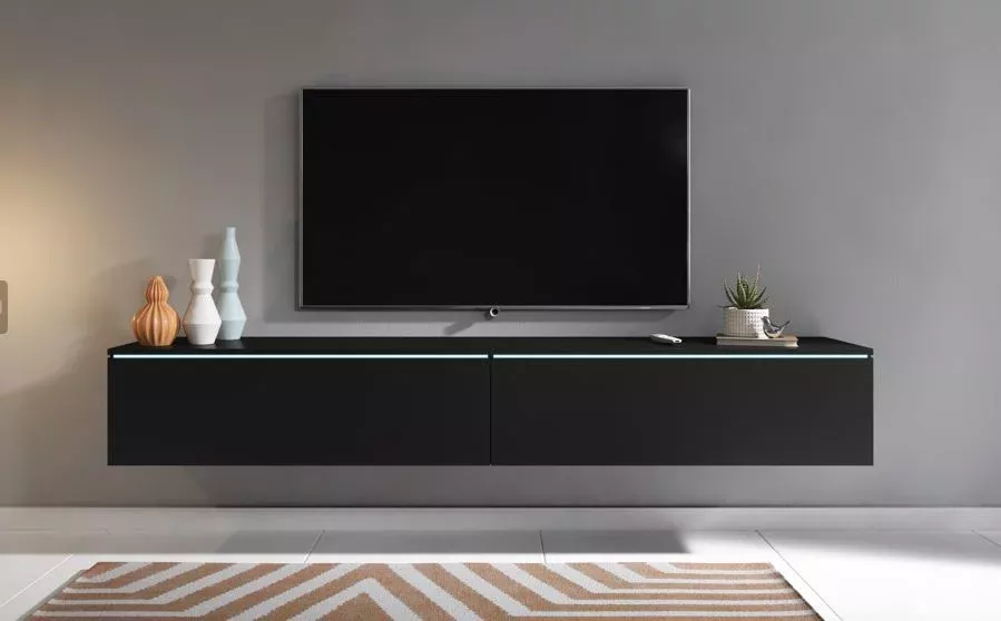 Designový televizní stolek CERIEE přitáhne zrak i ve chvíli, kdy bude obrazovka vypnutá. Je jen na vás, zda mu dáte klasickou stabilitu na podlaze, nebo moderní vzdušnost zavěšením na stěnu.