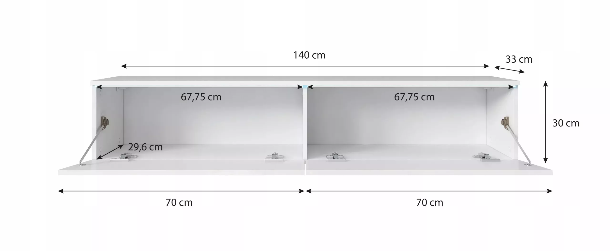 Za sklopnými dvířky najdete dostatečně velký úložný prostor: 2 praktické přihrádky, které zajistí přehledné uspořádání elektroniky a diskrétně skryjí ovladače, časopisy a spoustu dalších drobností. Díky tomu bude každá věc na dosah ruky a zároveň na svém místě, takže pro vás bude snadnější udržovat v místnosti pořádek.