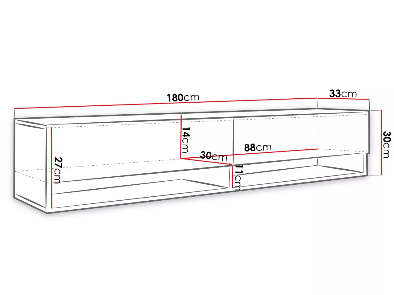 Televizní skříňka se vyznačuje svým elegantním designem a skvěle zapadne do každého moderního interiéru. Skříňka je vyrobena z kvalitní LTD desky. Praktické skříňky nabízí úschovu elektronických zařízení nebo jiného příslušenství.