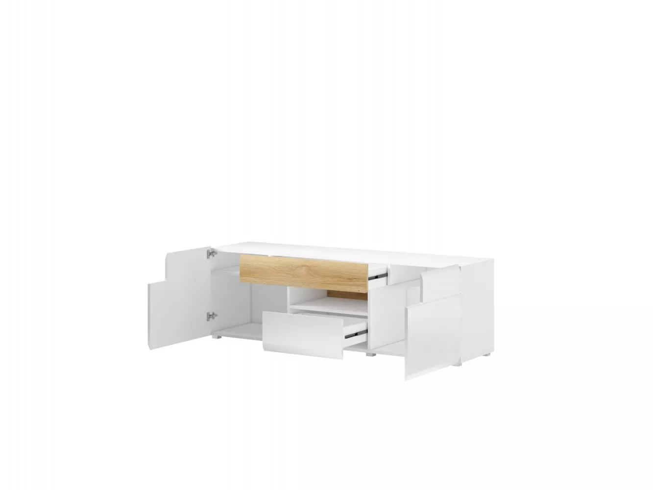 Závěsný TV stolek TRELLA - dub wotan / bílý