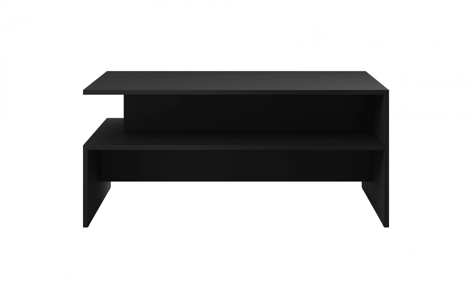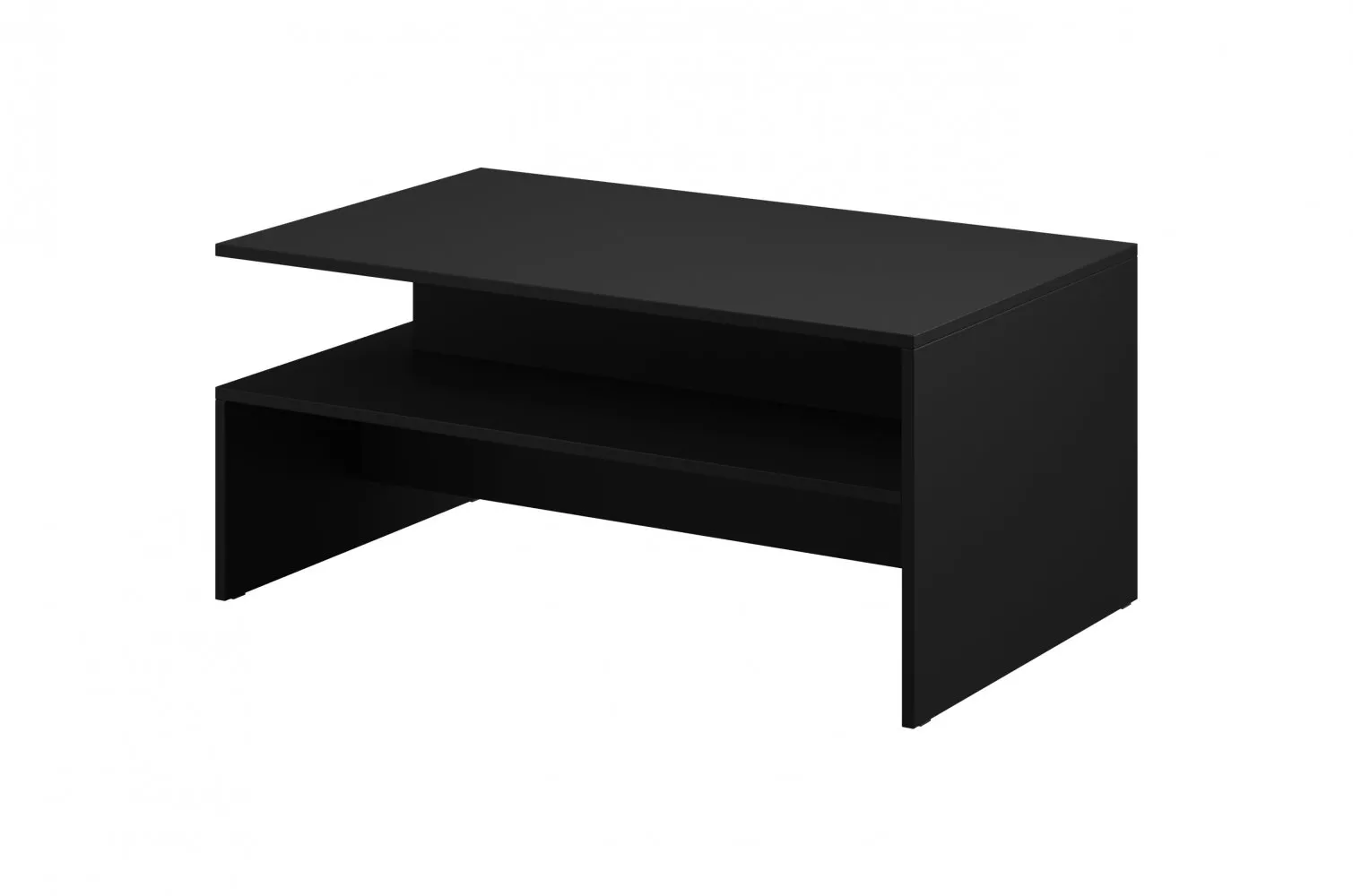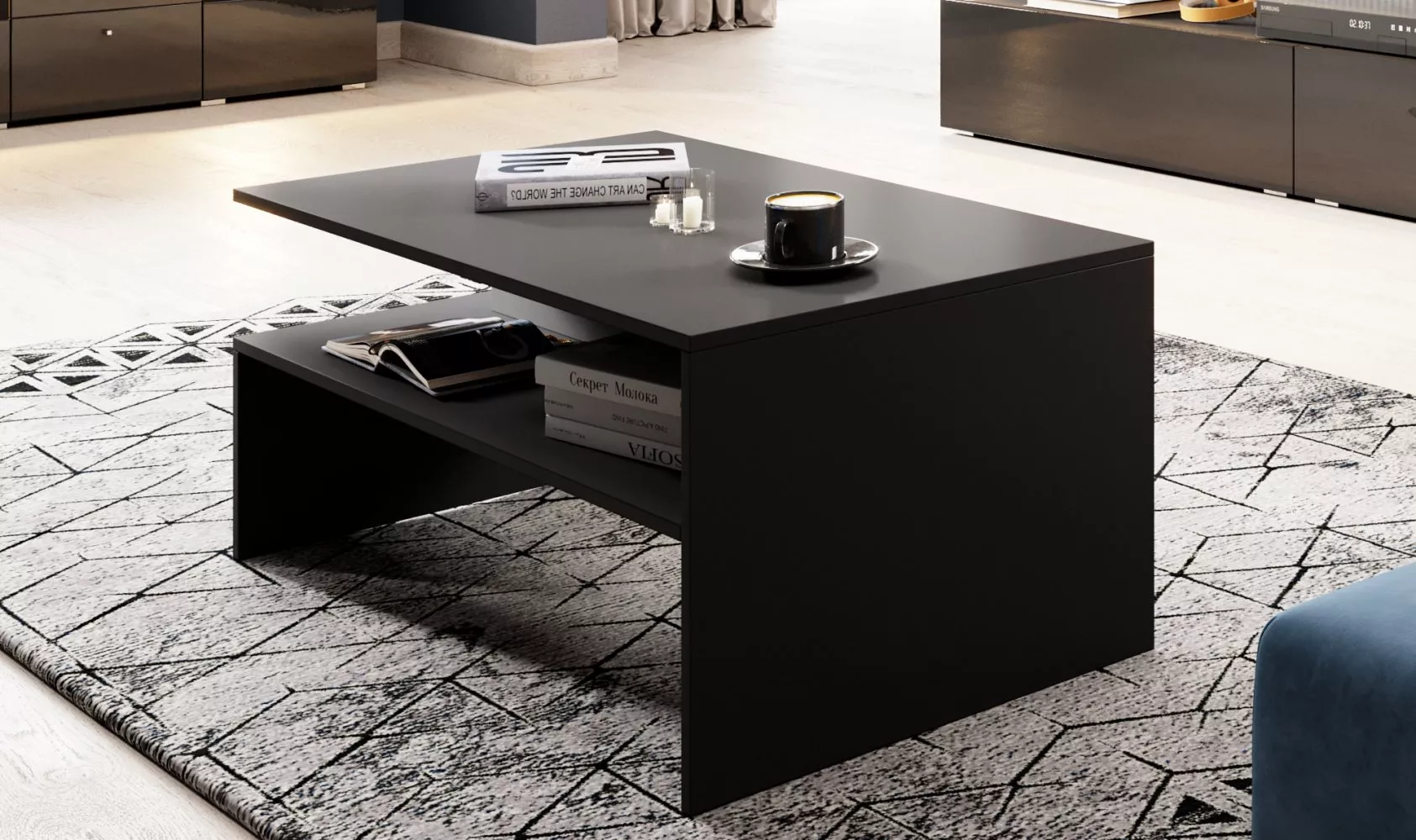 Nabídka konferenčního stolku z kolekce Annemarie se stává praktickým prvkem vybavení moderních interiérů. Černé barevné provedení produktu snadno kontrastuje méně charakteristické kompozici a tvoří požadovaný kontrast. Nábytek je vyroben z odolné vůči poškození desky, díky čemuž Vám bude sloužit po dlouhá léta. Přítomná pod deskou police zajistí místo na knihu nebo dekorace, které obohatí místnost.