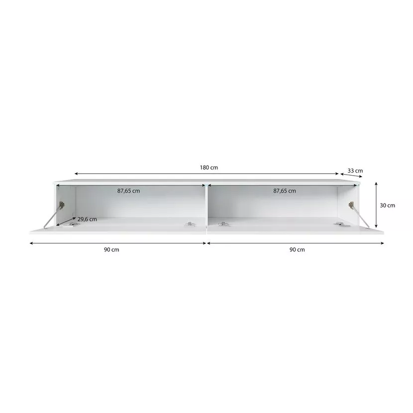 Za sklopnými dvířky najdete dostatečně velký úložný prostor: 2 praktické přihrádky, které zajistí přehledné uspořádání elektroniky a diskrétně skryjí ovladače, časopisy a spoustu dalších drobností. Díky tomu bude každá věc na dosah ruky a zároveň na svém místě, takže pro vás bude snadnější udržovat v místnosti pořádek.