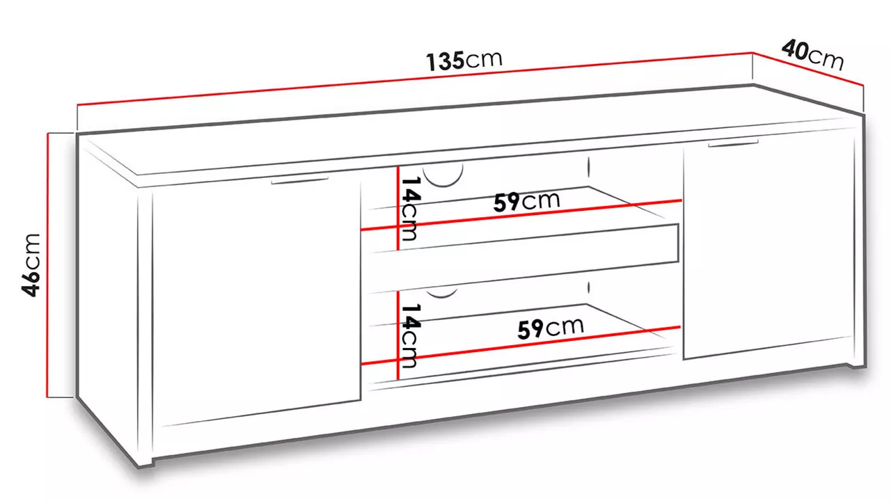 Stylová televizní skříňka PEORIA 2 je designový a minimalistický kus nábytku vhodný do moderní obývacího pokoje. Z hlediska funkčnosti poskytuje televizní skříňka mnoho prostoru pro potřebné televizní příslušenství. Otevřená police a šuplík jsou dokonalým místem pro set-top box, hry, desky a sluchátka.