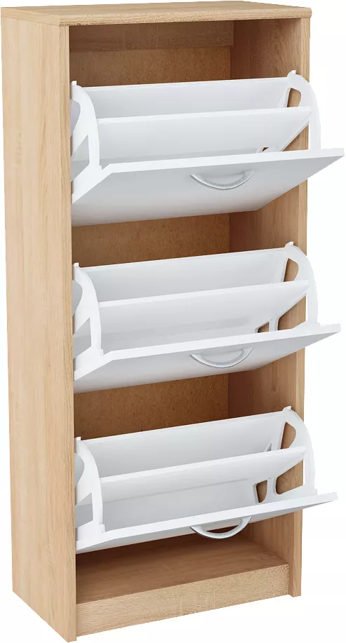 Prostorná a funkční skříň na boty, kterou lze použít v každé domácnosti. Botník má 3 skříňky vybavené speciálními příčkami, které dokonale organizuji prostor.